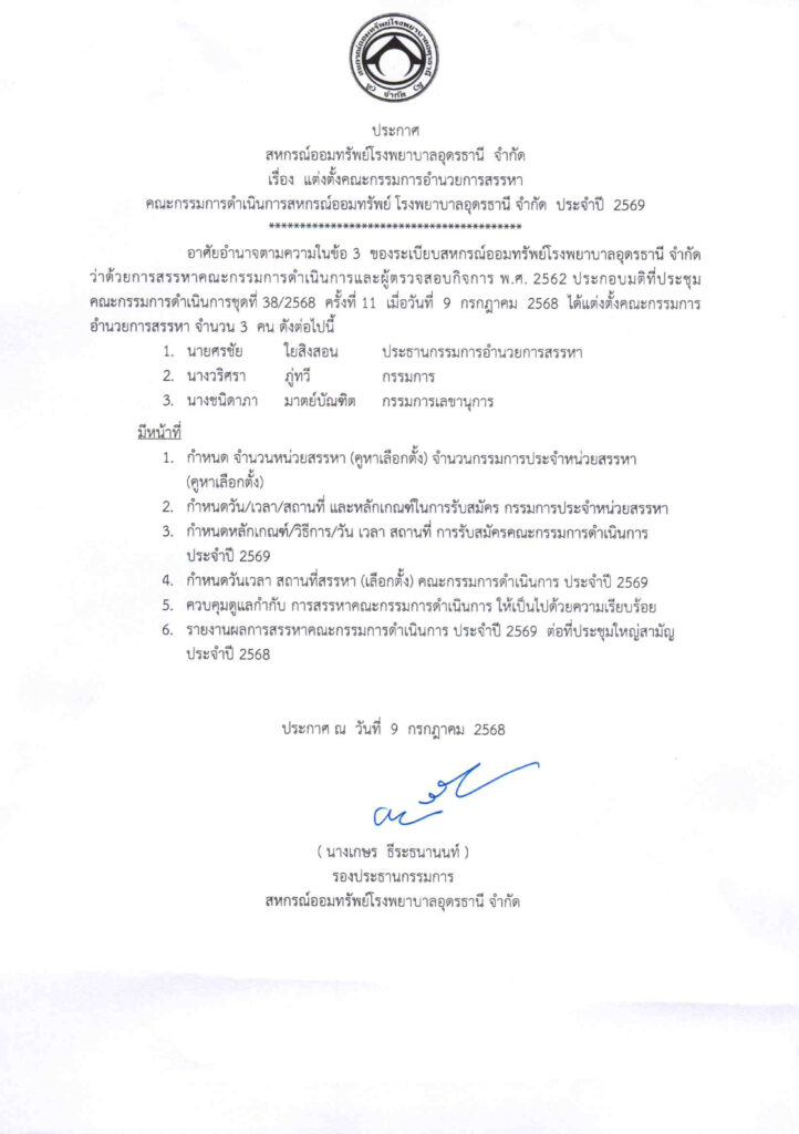 ประกาศคณะกรรมการอำนวยการสรรหา 2569
