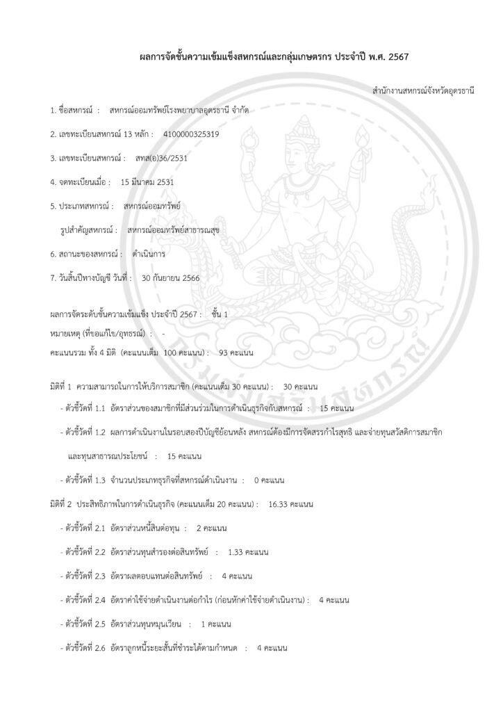 สอ.รพ.อุดรธานี ได้รับการจัดลำดับชั้น “ระดับความเข้มแข็ง ชั้น 1”
