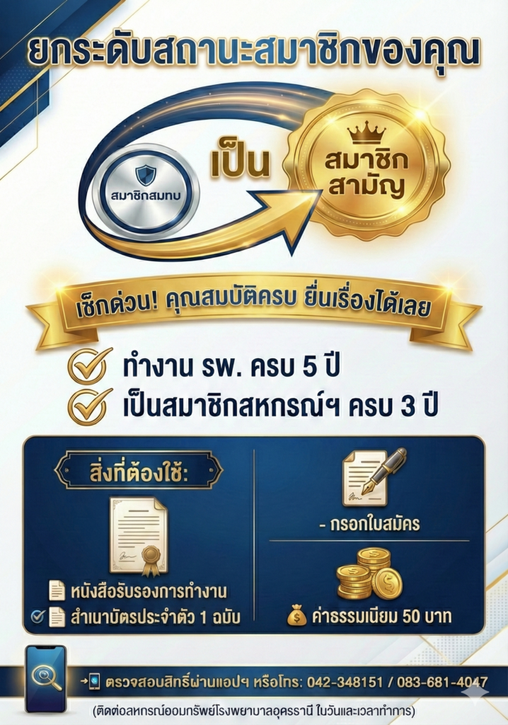 เช็คสิทธิ์สมาชิกสมทบ เปลี่ยนเป็นสมาชิกสามัญ